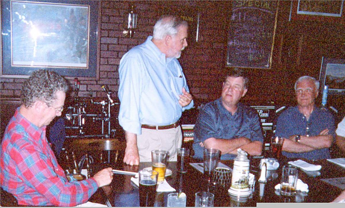 From left: Floyd Paseman, Sqdn Commo Officer (Organizer of first reunion) Curt Von Kann (giving a brief summary of activities since leaving Bad Hersfeld in the early 1960's), Joe Donnelly, Hans Duerr
