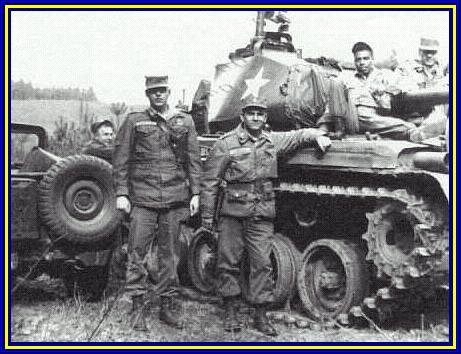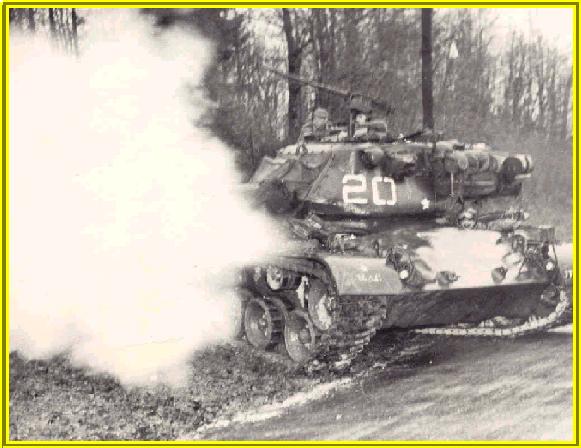 Engaging the enemy while on Exercise Frosty. The tank commander is Ted Cohen and the other guy is the umpire who gave credit for a "kill."